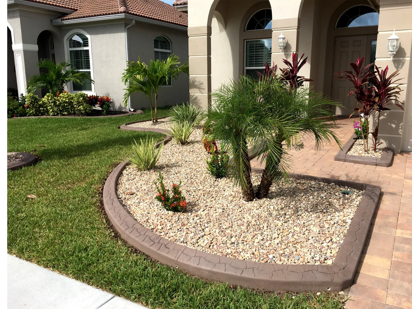 Landscape curbing is an innovative way of making your flower beds and walkways look great. It is one continuous piece of concrete that can be poured in all sorts of ways. It can be colored in various shades and can be stamped with certain stamps.
